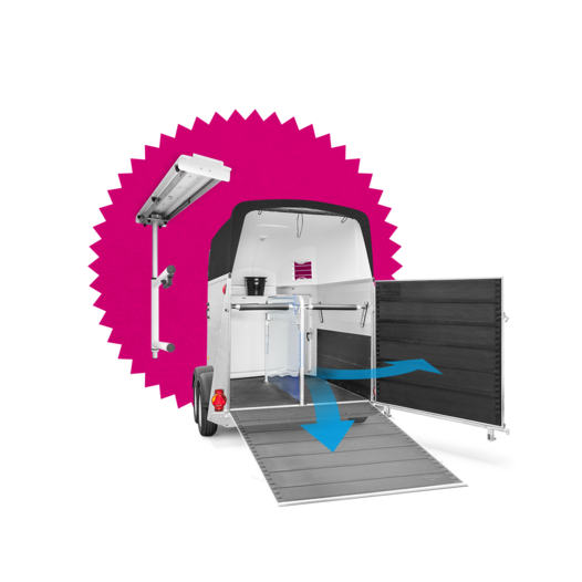 In der Limited Darkblue Edition ist Ihr Pferd außerdem durch das patentierte Humbaur Panikentriegelungssystem geschützt und kann im Ernstfall im Handumdrehen aus dem Anhänger befreit werden.