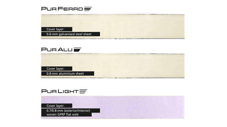 - Certain transport requirements call for the use of a lighter aluminium skin (PurAlu, top layer: 0.8 mm aluminium sheet).